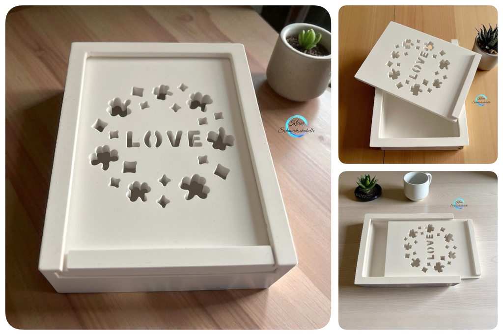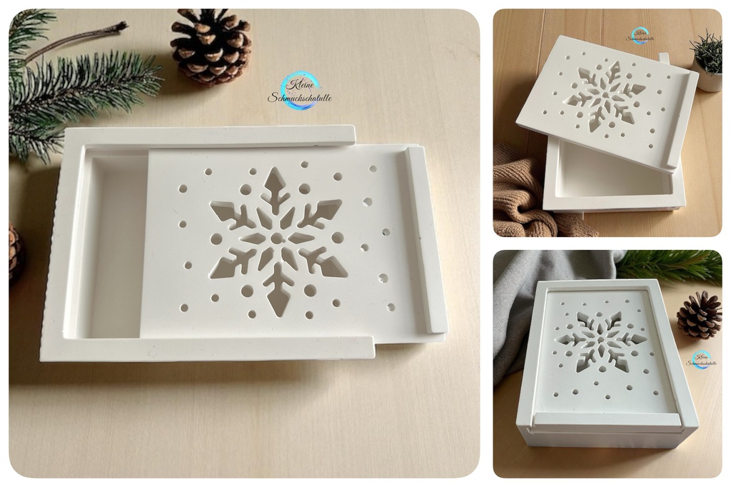 Die Boxen eignen sich wunderbar für kleine Geschenke und Mitbringsel. Auch eine kleine Lichterkette zur Verzierung findet Platz. Der Deckel kann ganz einfach aufgeschoben werden und ist